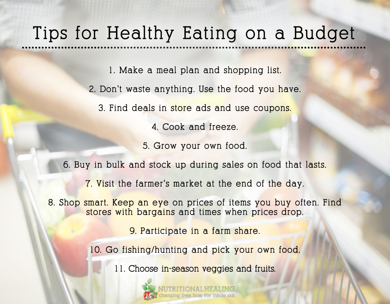 It can make a huge difference to your mood, energy, waistline, and how well you think and feel. As you learn how to diet on a budget, aim to make 70% or more of your grocery list whole foods. Whole foods are foods that are unprocessed, unrefined, or are in their most natural state upon consumption.